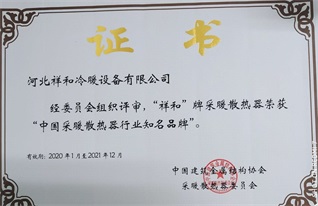 河北祥和冷暖設(shè)備有限公司被中國(guó)建筑金屬協(xié)會(huì)采暖散熱器委員會(huì)評(píng)為:中國(guó)采暖散熱器行業(yè)知名品牌